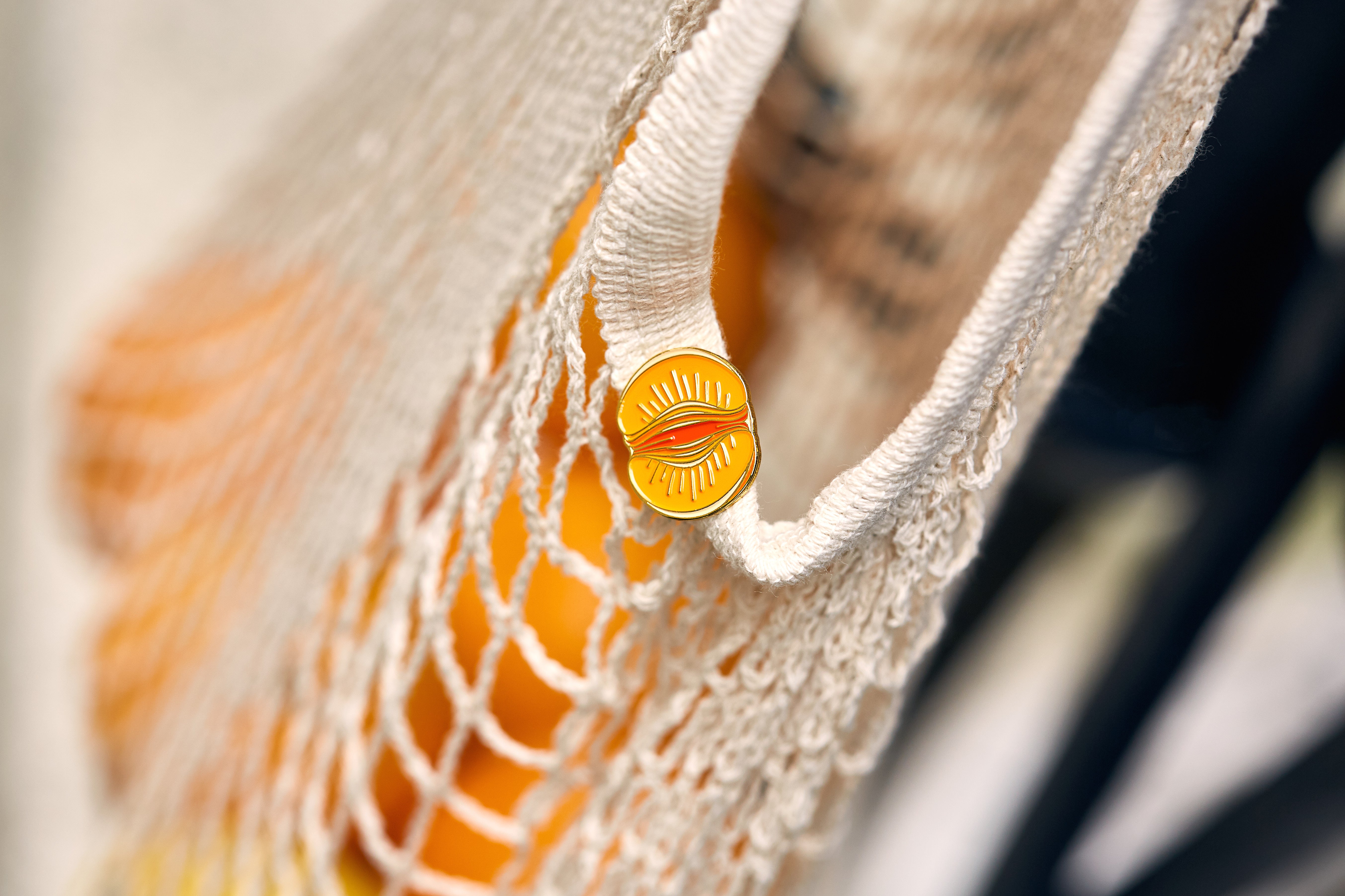 Freche Emaille-Anstecknadel mit Clementinen-Motiv, das mit seinem koketten Design und den liebevollen Details jedem Outfit eine Prise Humor verleiht. Befestige den Pin an deiner Jacke, Tasche oder deinem Accessoire – frisch und saftig.