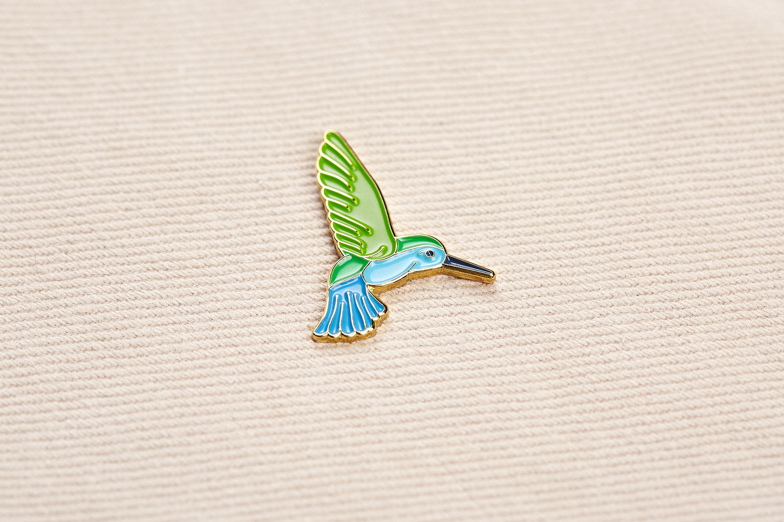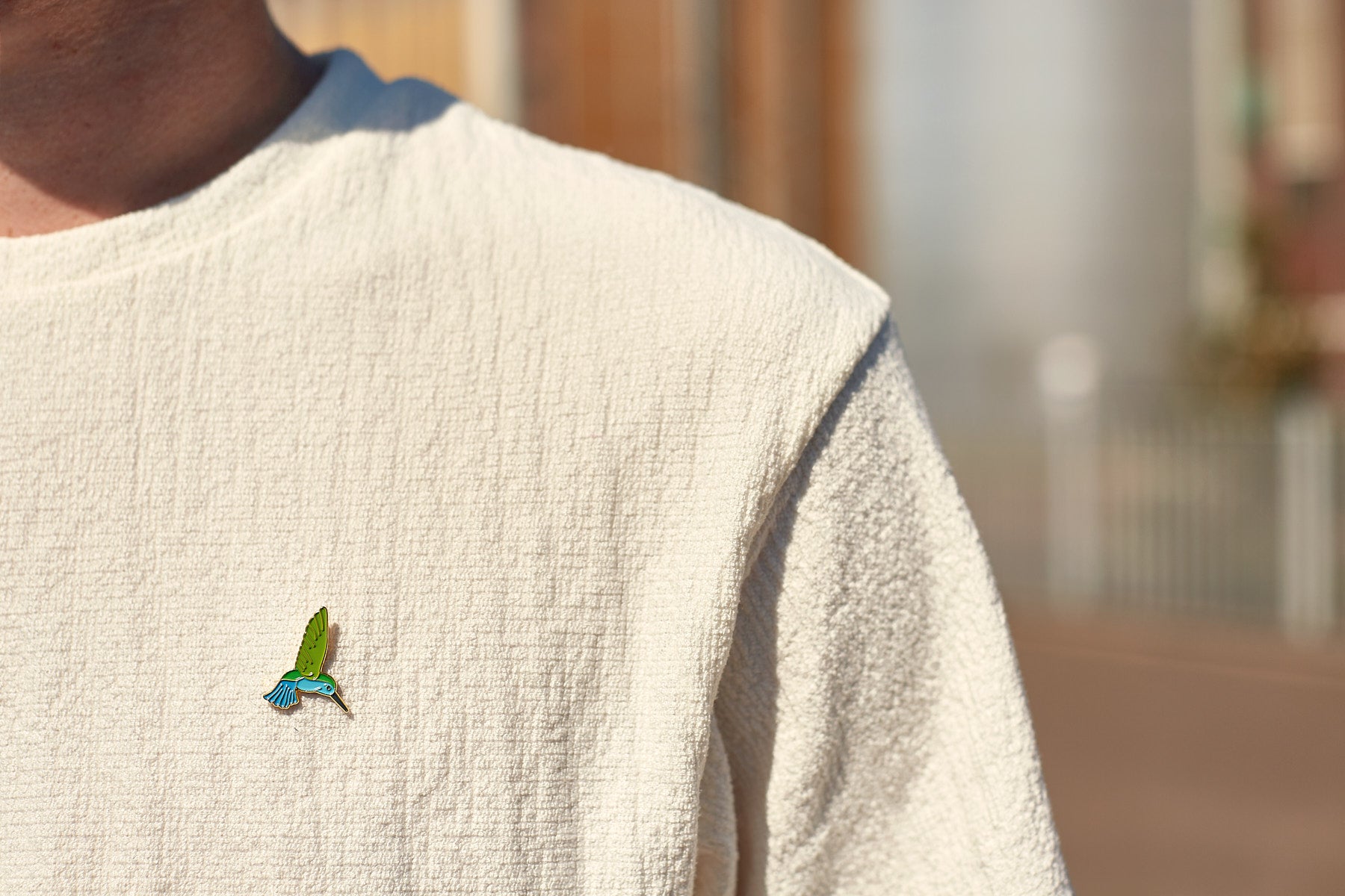 Manche Tiere sind so schön und talentiert, dass sie fast ein bisschen zauberhaft wirken. Unser „Coolibri“-Pin bringt die Magie des Kolibris auf den Punkt – mit schimmernden Blau- und Grüntönen, die je nach Licht und Bewegung lebendig werden. Befestige dieses fliegende Farbjuwel an deiner Jacke, Tasche oder Mütze und nimm dir ein Stück Naturwunder mit in den Alltag.