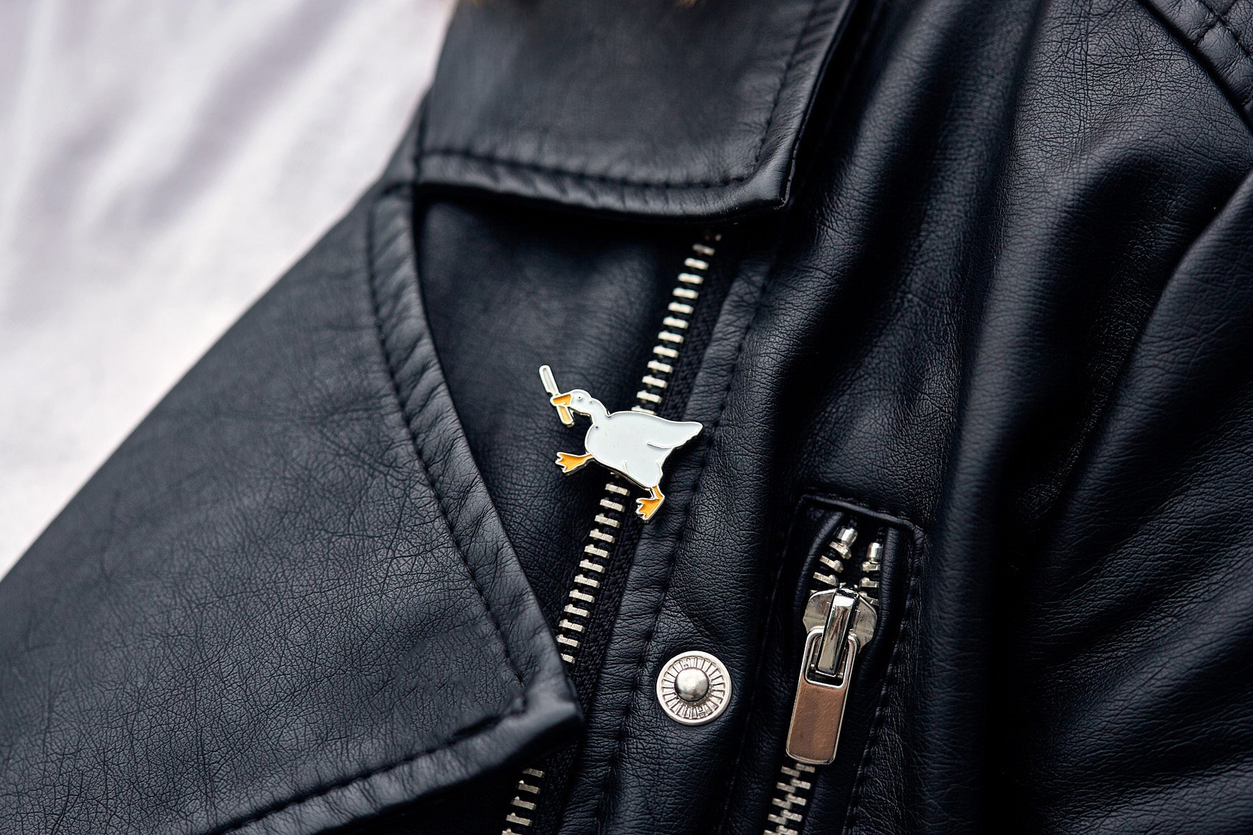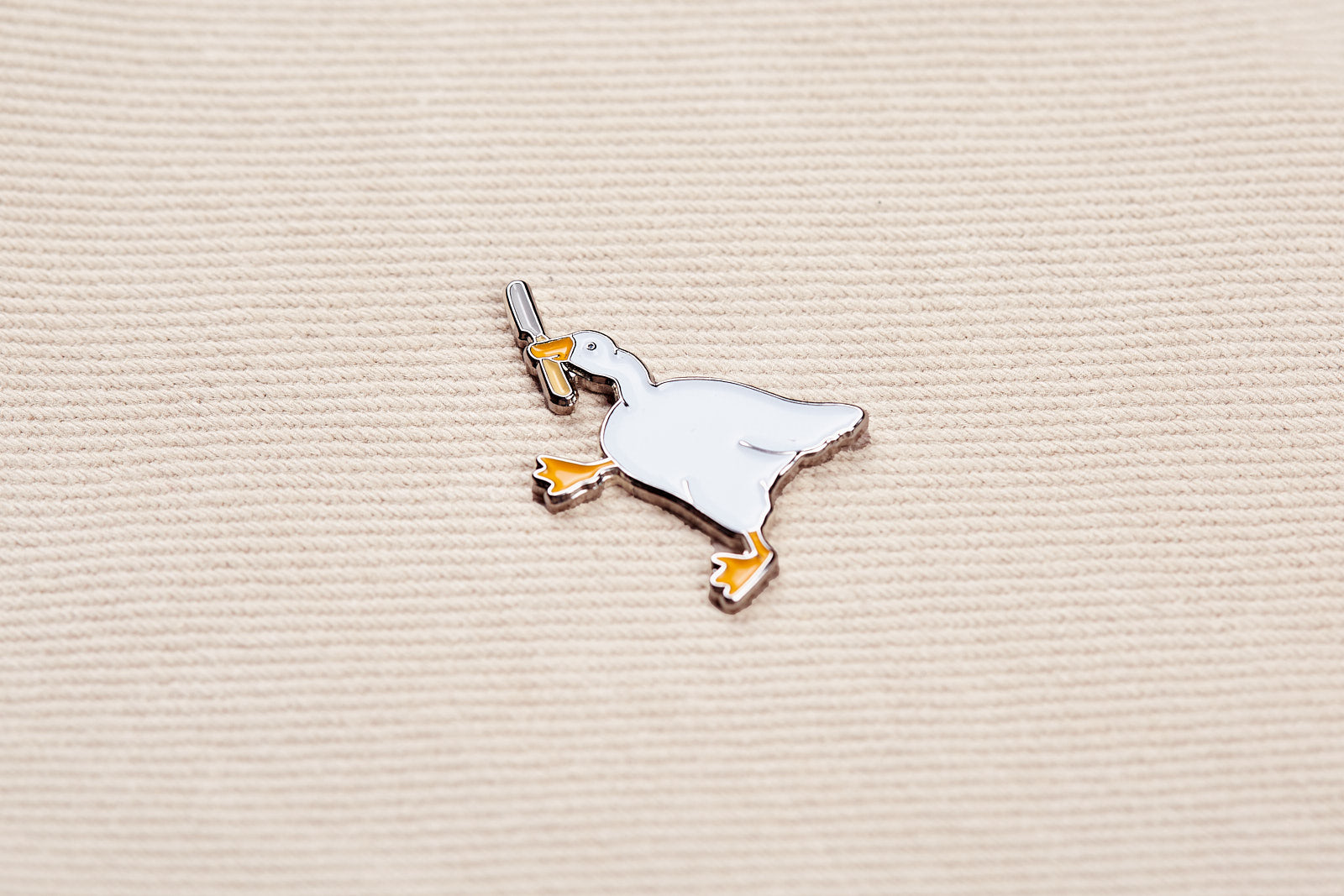 Eine Gans. Ein Messer. Und null Reue. Dieser Pin ist eine Hommage an das wohl wildeste Meme – für alle, die Internet-Humor mit einem scharfen Schnabel lieben. Ob an deiner Jacke, Tasche oder Mütze: unsere Gans bringt eine ganz gerne Chaos in deinen Alltag.