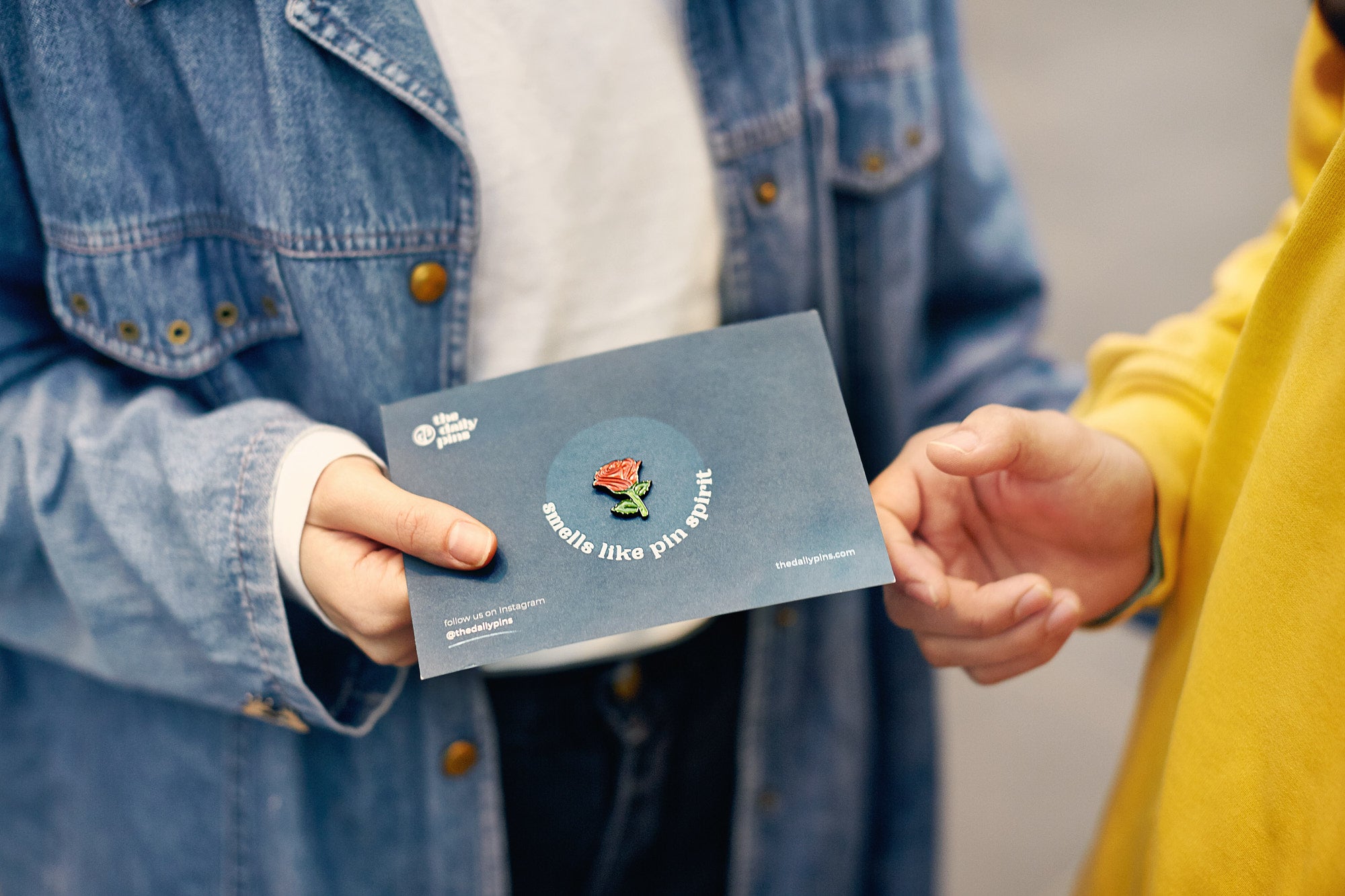 To attach your pin, press the clutch wings and pull to remove it. Place the pin where you want it, then reattach the clutch while pressing the wings. If the clutch doesn’t come off without pressing, your pin is secure— Easy-peasy, lemon squeezy!