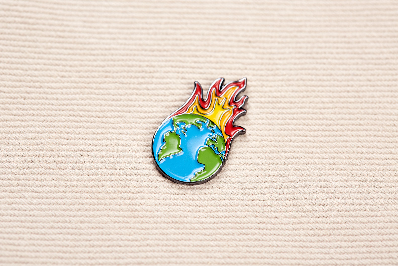Some messages are too urgent to keep quiet about. Our "It's Getting Hot in Here" enamel pin delivers that crucial reminder with its striking image of our planet Earth engulfed in rising flames. Pin this conversation-starter to your jacket, bag, or hat to spark important discussions about our changing climate wherever you go.